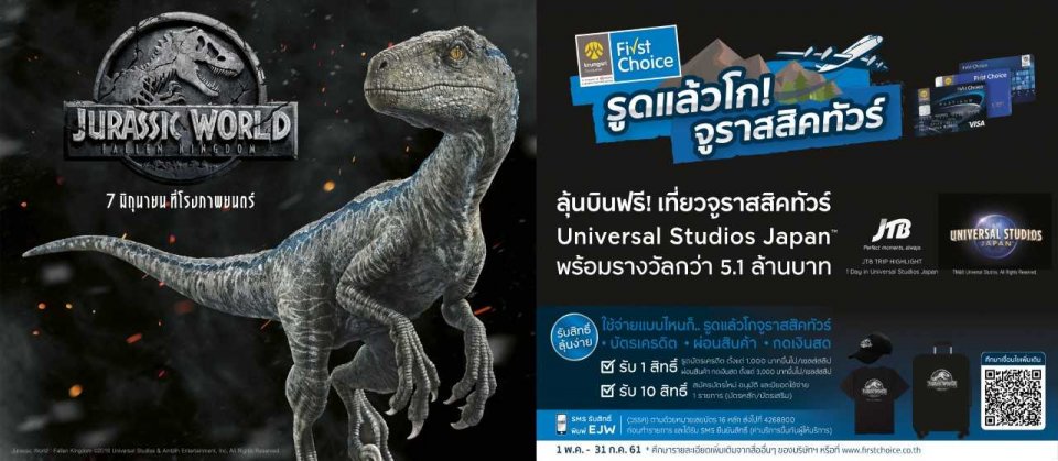 ใครที่สนใจแคมเปญใหญ่นี้ของเครือกรุงศรีฯ สามารถอ่านรายละเอียดเพิ่มเติมได้ที่ www.firstchoice.co.th/th/Promotion/Promotion-by-Service/Credit-Card/JurassicWorld_FallenKingdom แล้วมาลุ้นไปตะลุยจูราสสิคทัวร์ด้วยกันนะ !