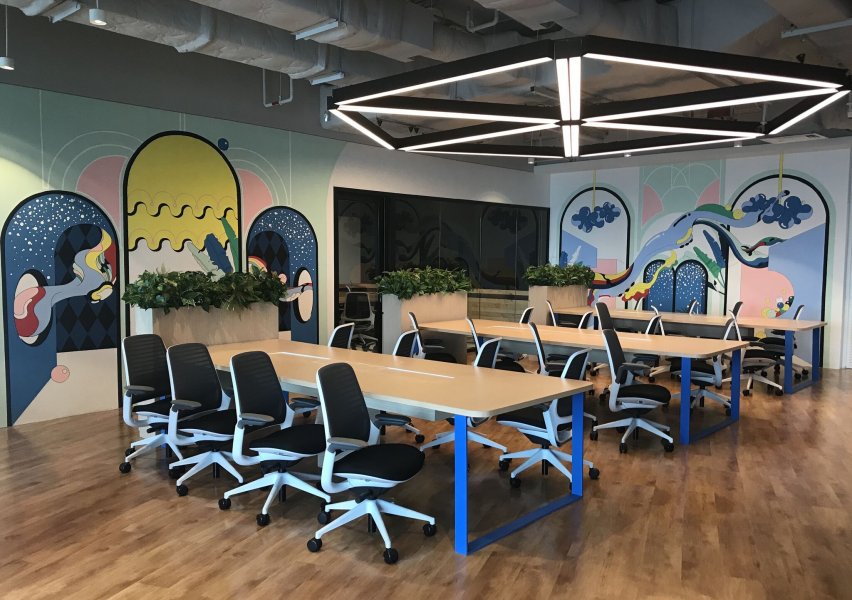 ภายในยังได้นักวาดภาพประกอบสาวชาวไทยผู้มีผลงานร่วมกับแบรนด์ระดับโลกอย่าง Pomme Chan มาจรดฝีแปรงผ่านกำแพงสร้างสีสันสดใส น่ารัก น่าผ่อนคลาย เติมแต่งความมีชีวิตชีวาให้กับการทำงานได้เป็นอย่างดี