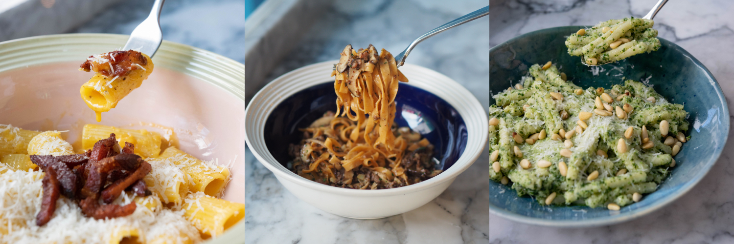 DIY Pasta Kits มี 3 เมนูยอดนิยมให้เลือก คือ Rigatoni Carbonara พาสต้าสไตล์โรมแท้ ๆ พร้อมแก้มหมูหมัก และไข่ไก่ Tagliatelle alla Montanara พาสต้าไส้กรอกอิตาเลียน ปรุงด้วยเห็ดป่า ท็อปด้วยชีส และ Pesto 'alla Genovese' พาสต้าใส่โหระพาอิตาเลียน เมล็ดสน ท็อปด้วยชีส 2 แบบ ซึ่งทุกเมนูจะมาพร้อมกับการ์ดอธิบายวิธีการทำอย่างละเอียด