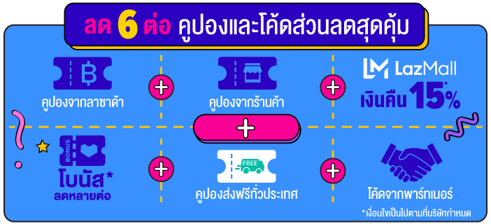 แหงล่ะ! ข้อนี้ไม่ต้องบอกก็รู้ว่าต้องวอร์มรอเอาไว้เลย เพราะวันเกิดปีที่ 9 ทั้งที Lazada ก็ต้องลดแหลกแจกไม่อั้นกันแบบปั๊วะปังกันอยู่แล้ว และงานนี้ทาง Lazada เขาลดกันถึง 6 ต่อ! ทั้งคูปองและโค้ดส่วนลดสุดคุ้มไปเลยนะ