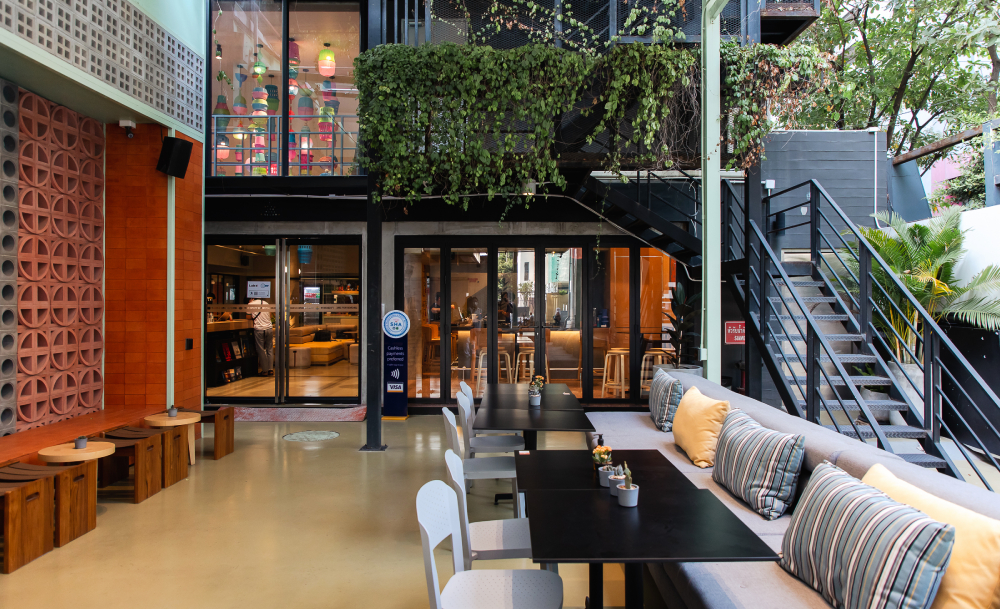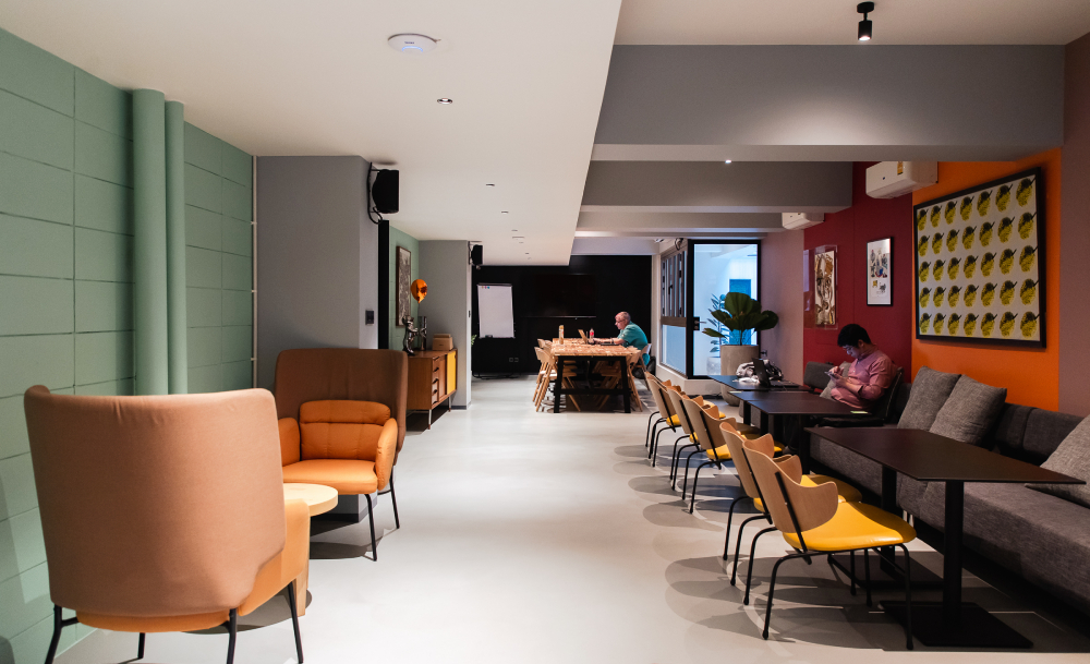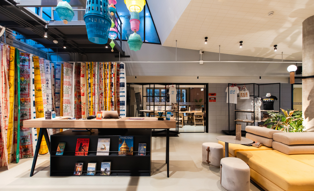 นอกจากพาร์ตห้องพักที่ปรับปรุง เขายังเพิ่มพื้นที่ส่วนกลางและ Co-working Space อุปกรณ์ครบ ตอบสนองไลฟ์สไตล์คนทำงานไม่ติดที่ แถมยังรองรับการประชุมและจัดเวิร์กชอปได้อีก และตอบโจทย์ขึ้นไปอีกขั้นกับคาเฟ่ด้านหน้าที่พัก Rodken (รถเข็น) ที่สนับสนุนความเป็นชุมชนยั่งยืน ไม่เน้นหรูหรา แต่มีกาแฟดี ๆ เสิร์ฟ เห็นรูปแบบร้านแล้วนึกถึงร้านหน้าโรงเรียนสมัยก่อนเลยล่ะ ซึ่งก็แน่นอนว่าต้องมาคู่บาร์ชิลล์ ๆ อย่าง District (ดิสทริก) ที่มาพร้อมไวบ์ที่เป็นมิตรกับทุกคนด้วย