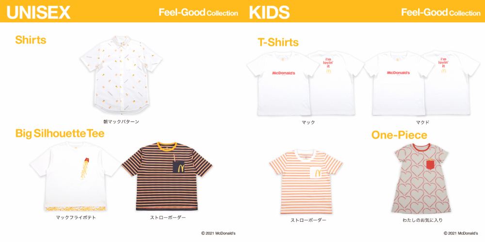 McDonald's Japan เปิดให้บริการสาขาแรกที่ย่านกินซ่า ของกรุงโตเกียว เมื่อปี 1971 และติดตลาด เป็นที่นิยมขึ้นมาเรื่อย ๆ จนมีสาขาทั่วประเทศในที่สุด ซึ่งคอลเลกชันเสื้อ McDonald's Japan x Graniph นี้ ก็ประกอบไปด้วย เสื้อยืด เสื้อเชิ้ต และเดรส ทั้งแบบปักและแบบพิมพ์ลาย โดยยึดดีเทลไอคอนิกของแบรนด์เป็นหลัก ตั้งแต่โลโก้ สีสัน ไปจนถึงเมนูที่ทุกคนคุ้นเคย ซึ่งทั้งหมดยังแบ่งได้เป็น 2 ไลน์ย่อย คือ Feel-Good Collection และ Heritage Collection