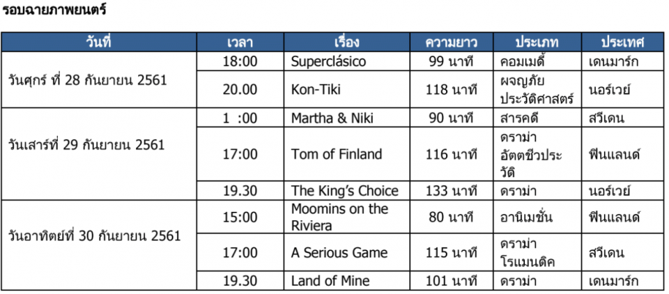พร้อมครอบคลุมกลุ่มคนรักหนังทุกแนวไม่ว่าจะเป็น ตลก ดราม่า สารคดี ฯลฯ ผ่านความร่วมมือของสถานเอกอัครราชทูตเดนมาร์ก นอร์เวย์ สวีเดน และฟินแลนด์ ที่บอกเลยว่าฟินจ้าเพราะผู้ใหญ่ใจที่เหล่านี้เขาเอามาให้เราได้ดูฟรี ! เหมาะกับช่วงสิ้นเดือนที่เริ่มหมดตัวกันสุด ๆ โดยเรื่องย่อของหนังทั้งหมดกว่า 8 เรื่องนั้นก็มีดังนี้