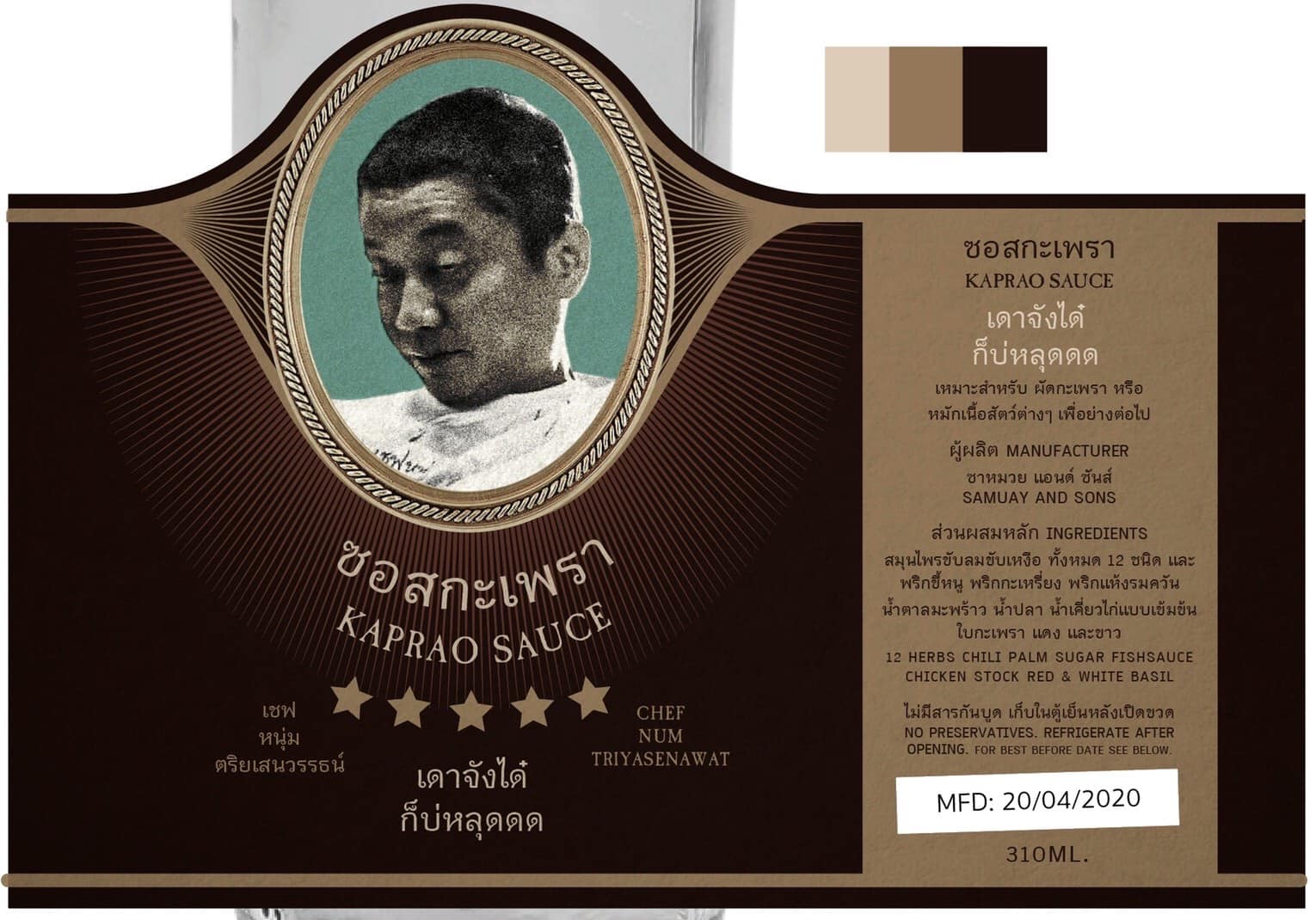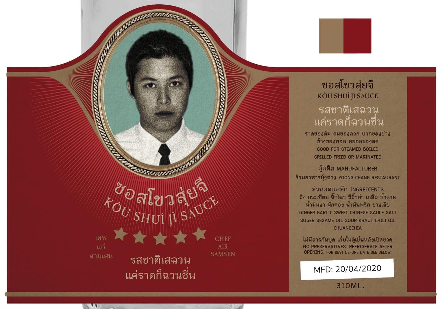 นอกจากนั้นยังมี ซอสโขวสุ่ยจี 'รสชาติเสฉวน แค่ราดก็ฉวนชื่น' ของเชฟแอ๋–กุลพล สามเสน ลูกชายคนสุดท้องของ เชฟป้อม-ม.ล.ขวัญทิพย์ เทวกุล เจ้าของร้าน ยุ้งฉาง ร้านอาหารจีน Neo-Chinese แห่งย่านอารีย์ที่เสิร์ฟเปี๋ยงเปี๋ยงเมี่ยนที่แรกและที่เดียวในไทย ผู้มาพร้อมกับคาแรกเตอร์บนฉลากที่ได้อินสไปร์มาจากการใช้รูปสมัยสาว ๆ ของน้ำพริกแม่ประนอม ซึ่งมีความห่างไกลเหลือเกินกับตัวจริงในปัจจุบัน อย่างไรก็ดี ซอสเจ้านี้นั้นสามารถนำไปราดหรือคลุกเคล้ากับอาหารได้หลายประเภท ทั้งของต้ม ของลวก ของทอด ไปจนถึงของย่าง เพื่อรสชาติแบบอาหารจีนเสฉวนที่เหมือนได้วาร์ปไปเหยียบแผ่นดินมังกรทุกครั้งที่กิน (อันนี้ก็เวอร์)