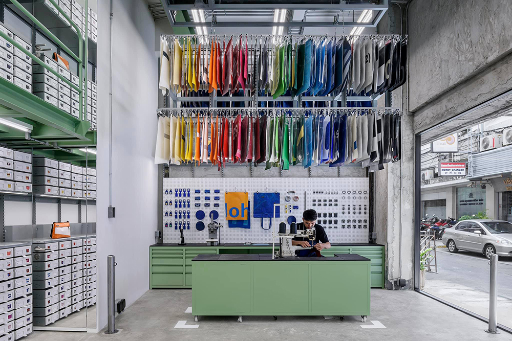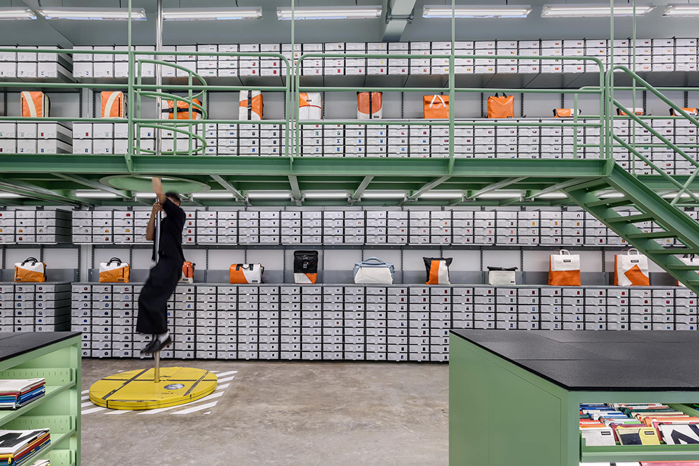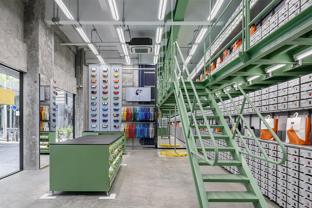 Freitag Store by Pronto ชอปกระเป๋าผ้ารถบรรทุกแห่งใหม่ล่าสุดของกรุงเทพฯ นี้ตั้งอยูที่ ซ.สีลม 8 โดยความโดดเด่นของชอปแห่งนี้คือการที่เขาออกแบบภายในให้เหมือนกับเป็นอู่ซ่อมรถขนาดย่อม โดยที่ตั้งตระหง่านจากพื้นจรดเพดานนั้นก็คือตู้เก็บชิ้นส่วนผ้าใบรถบรรทุกที่เหลือจากการผลิต ซึ่งรอให้เราเข้าไปสำรวจและเลือกหยิบมาเติมความเท่ให้กระเป๋า Freitag แบบของเรา!