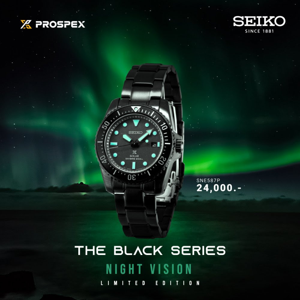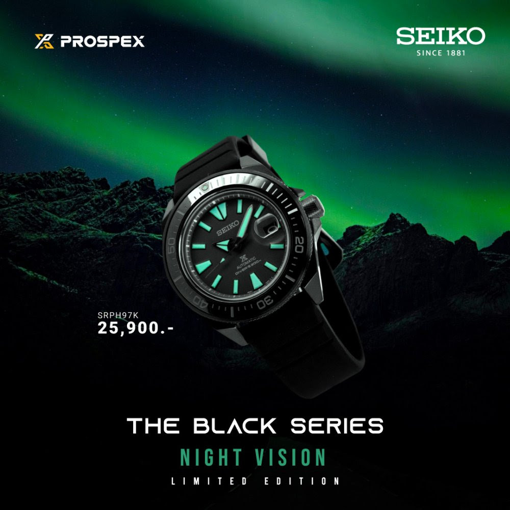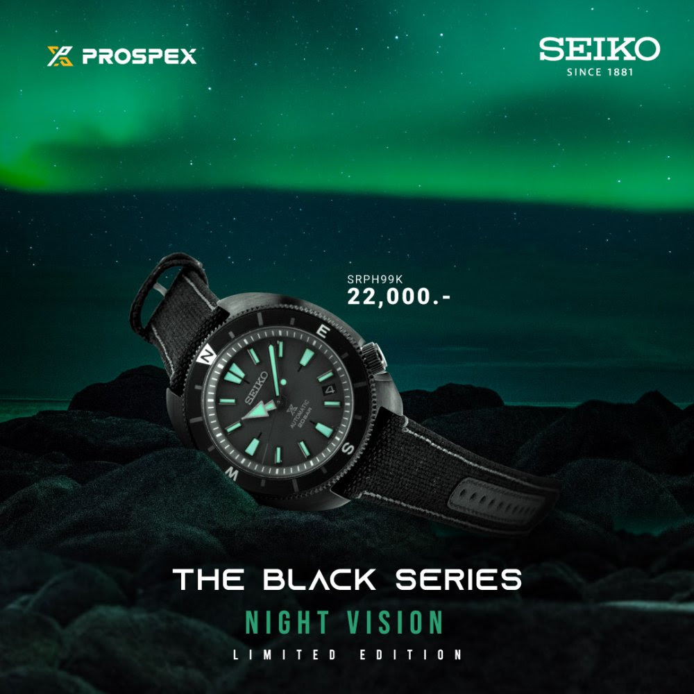 เป็นอีกแบรนด์ที่ขยันออกคอลเลกชันพิเศษมาล่อตาล่อใจและล่อเงินเรามาก ๆ อย่างแบรนด์นาฬิกาคุณภาพ Seiko ที่ก่อนหน้านี้ทำนาฬิกาประจำภาคต่าง ๆ ของประเทศไทยออกมาได้สวยงานละเอียดมากเวอร์ ล่าสุดเขามากับโปรเจกต์ที่ไม่เน้นสีสัน แต่เน้นความเท่คมคาย โดยปล่อย Seiko Prospex Black Series นาฬิกาดำล้วนเวอร์ชันปี 2022 ในคอนเซปต์ Night Vision ที่มาพร้อมดีเทลสีเขียวเรืองแสง ซึ่งก็วางจำหน่ายแบบลิมิเต็ดเอดิชันด้วย ทั้งทั่วโลกและในไทยเอง ใครอยากได้ต้องรีบเลยนะ!