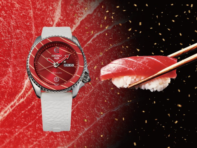 ส่วน SRPF95K ก็คงความอาหารญี่ปุ่นไว้ได้อย่างน่าเอ็นดูสุด ๆ ตั้งแต่ดีเทลหน้าปัดปลาดิบ เคสด้านหลังเป็นสีเขียววาซาบิ ปลายเม็ดมะยมเป็นสีโชยุ ปิดท้ายด้วยสายซิลิโคนขาวที่เป็นลายเมล็ดข้าวไปอีกแน่ะ เรียกว่าเก๋ในเก๋จริง ๆ ยอมใจในเรื่องการเก็บดีเทลของเขามาก ๆ