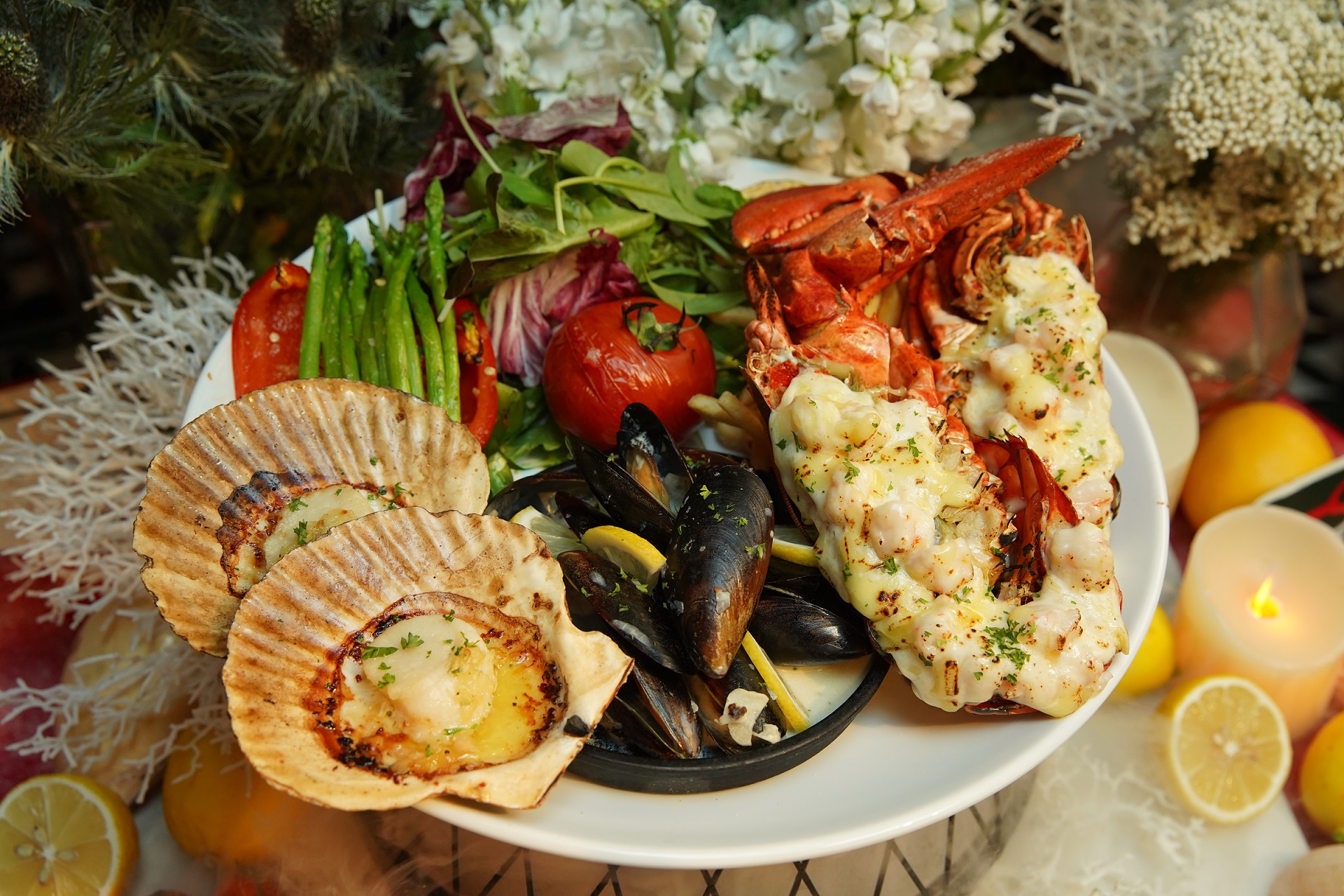 ต่อด้วยความอลังการกระแทกใจคนรักกุ้งจานที่สองอย่าง Mixed Seafood Platter (1,599 บาท) ที่ยกมาทั้งทะเลไทยและทะเลอินเตอร์ เริ่มยั่วน้ำลายกันแบบกร้าวใจกับกุ้งแม่น้ำย่างมันเยิ้ม ๆ ในไซซ์จัมโบ้ เสิร์ฟพร้อมกุ้งย่างเนยกระเทียมหอมกรุ่น และกุ้งชุบเกล็ดขนมปังทอดไซซ์ใหญ่กรุบกรอบเต็มคำ แถมด้วยน้ำจิ้มซีฟู้ดรสเด็ดเอาใจสายแซ่บ ถือเป็นเซตที่คุ้มค่าสำหรับคนรักจุ้งโดยแท้