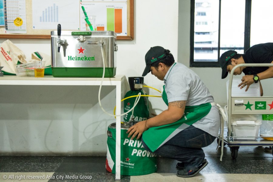 เพราะล่าสุดทาง Heineken จัดบริการพิเศษในชื่อ STAR DELIVERY SERVICE ที่จัดเต็มมาทั้งอาหารจาก Greyhound (แบบ Catering) และเบียร์ไฮเนเก้นเย็น ๆ แบบยกมาทั้งถังส่งตรงถึงหน้าประตูออฟฟิศ