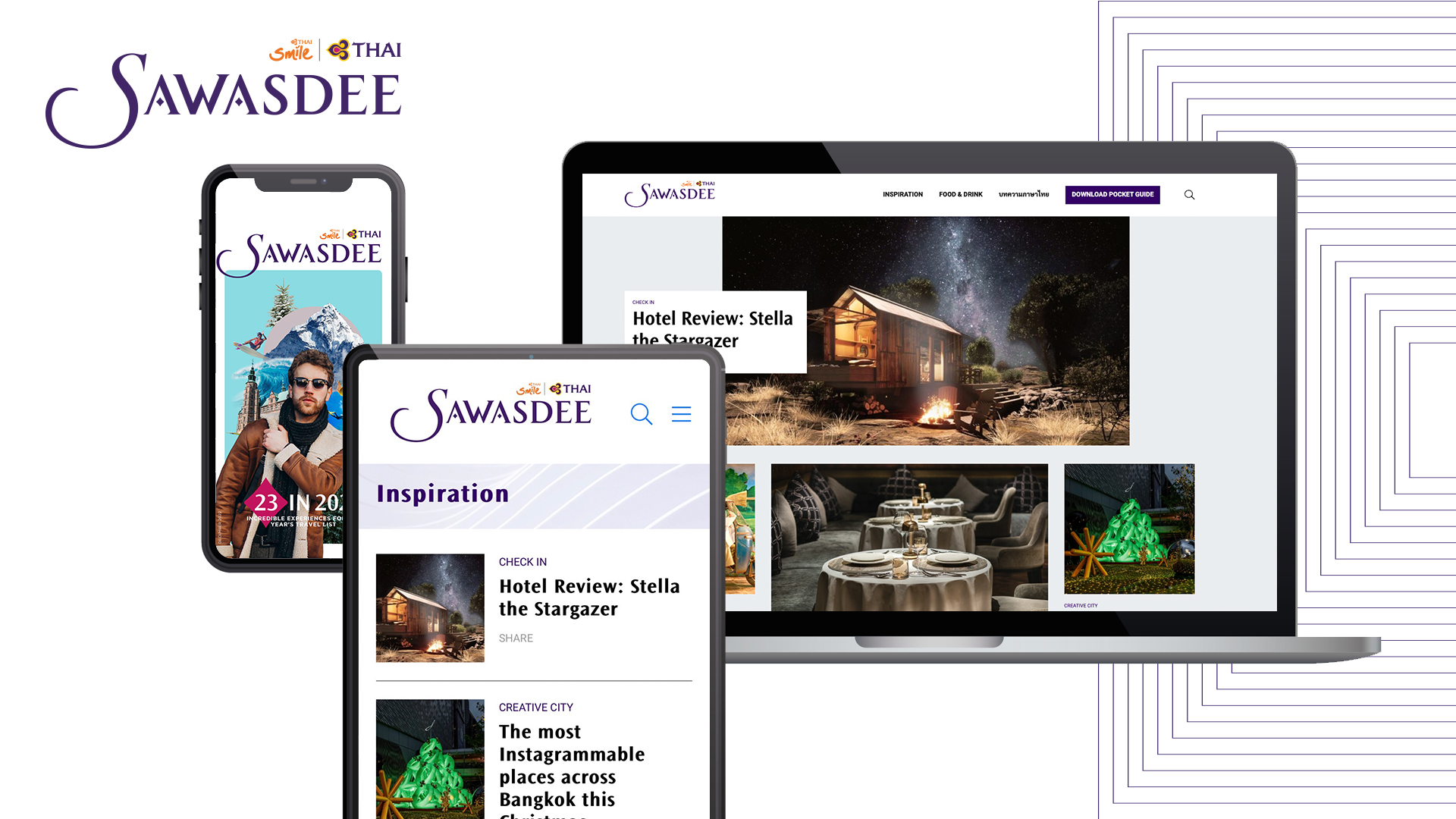โดยแพลตฟอร์มแรกที่เขาเปิดตัวมาในปลายปีนี้ภายใต้งานเปิดตัวในชื่อ Gateway to The Magical Journey คือสิ่งที่เรียกว่า Sawasdee Website มองรวม ๆ อาจจะเป็นแค่หน้าเว็บในรูปโฉมใหม่ แต่ครั้งนี้การบินไทยเขาตั้งใจให้เว็บไซต์นี้เป็นศูนย์รวมแห่ง Lifestyle Hub โดยเฉพาะสำหรับนักเดินทางที่อยากหาคอนเทนต์และข้อมูลด้านการท่องเที่ยวเพื่อเตรียมพร้อมสำหรับวางแผนการเดินทาง และสำรวจ Destination รอบโลกที่การบินไทยมีรูทบินตรง รวมถึง Sawasdee Pocket Guide ในรูปแบบ PDF ไฟล์ ที่เราสามารถดาวน์โหลดไว้อ่าน และติดตามอัปเดตได้ตลอดทุกเดือนผ่านเว็บไซต์ www.sawasdee.thaiairways.com ซึ่งก็ถือว่าเป็นก้าวใหม่ที่ทันโลกกว่ายุคก่อนหลายสเต็ป