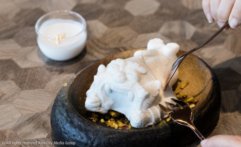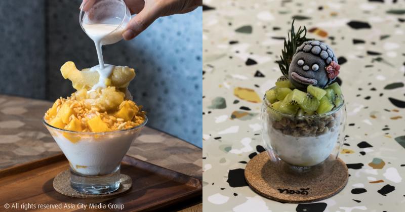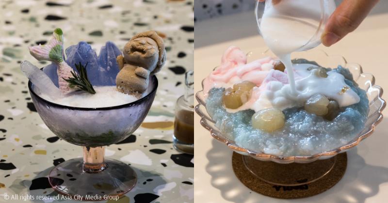 เงาะป่า (129 บาท) ไอศกรีมกะทิที่ทำออกมาเป็นหัวเจ้าเงาะ แล้วเคลือบด้วยชาร์โคล รองรับด้านล่างด้วยไอศกรีมซอร์เบต์เงาะ กีวีหั่นชิ้นพอดีคำ และเหล่าธัญพืชอบน้ำผึ้ง เวลากินต้องรอเจ้าเงาะละลายแป๊บนึง ถัดมาที่ แม่ปลาบู่ (149 บาท) เมนูบิงซูหนึ่งเดียวในร้าน ที่ทำเกล็ดน้ำแข็งด้วยน้ำกะทิ รายล้อมด้วยข้าวเหนียวมะม่วง แล้วท็อปด้วยแม่ปลาบู่ที่ทำจากซอร์เบต์มะม่วง นางเมขลา (119 บาท) จานที่ตกแต่งท้องมหาสมุทรด้วยข้าวเหนียวเปียกลำไยอัญชัน และท็อปด้วยนางเมขลาที่ทำจากไอศกรีมกะทิ จานสุดท้าย พระอภัยมณี (149 บาท) ลอดช่องใบเตยที่ตกแต่งด้านบนด้วยหางนางเงือกจากซาหริ่ม และไอศกรีมน้ำตาลมะพร้าวรูปนางยักษ์