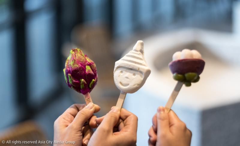 ต้องบอกเลยว่าไอศกรีมทองดีแต่ละแท่งนั้นผลิตจากผลไม้ออร์แกนิก 100% ไร้สิ่งปรุงแต่ง ทำให้รสชาติของไอศกรีมที่ผลิตในแต่ละฤดูไม่เหมือนกัน เปรี้ยวบ้างหวานบ้างตามผลผลิตที่ขึ้นตรงต่อสภาพอากาศ โดยจะมีตั้งแต่มัลเบอร์รีจากภาคอีสาน มะม่วงเบาจากภาคใต้ มะเกี๋ยงจากภาคเหนือ ส้มจากภาคกลาง และอื่น ๆ อีกมากมาย รสชาติที่เราได้ละเมียดละไมไปในแต่ละแท่งจึงเป็นการซึมซับรสชาติของฤดูกาลนั้น ๆ อย่างเต็มเปี่ยม ในขณะที่ไอศกรีมใจดีจะมีวัตถุดิบหลักเป็นกะทิ ซึ่งเขาก็คั้นสด 100% อีกนั่นแหละ แถมยังไม่ใส่ไซรัปเพิ่มด้วย ได้รสชาติแบบเข้มข้น เต็มไปด้วยเนื้อวัตถุดิบเน้น ๆ