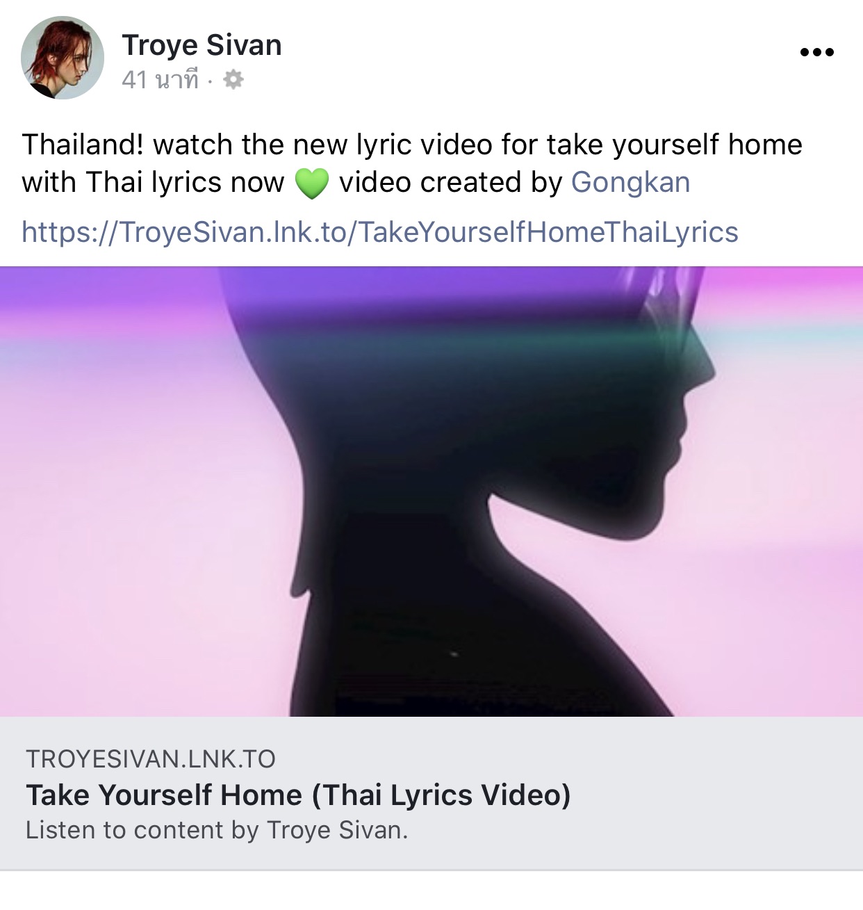 ถึงแม้ว่านี่จะไม่ใช่ครั้งแรกของการโกอินเตอร์และสร้างผลงานพิสูจน์ฝีมือตัวเองต่อสายตาคนทั้งโลกของ Gongkan (ก้อง-กันตภณ เมธีกุล) ศิลปินไทยเลือดใหม่กับลายเส้นชัดเจนในสายป็อปอาร์ต แต่นี่อาจเรียกได้ว่าเป็นครั้งแรกในประวัติศาสตร์ของ Troye Sivan ที่ได้ทำงาน Collaboration ร่วมกับศิลปินชาวไทยภายใต้ชิ้นงานสุดจ๊าบอย่างมิวสิกวิดีโอเพลงใหม่ Take Yourself Home เวอร์ชัน Thai Lyric Video