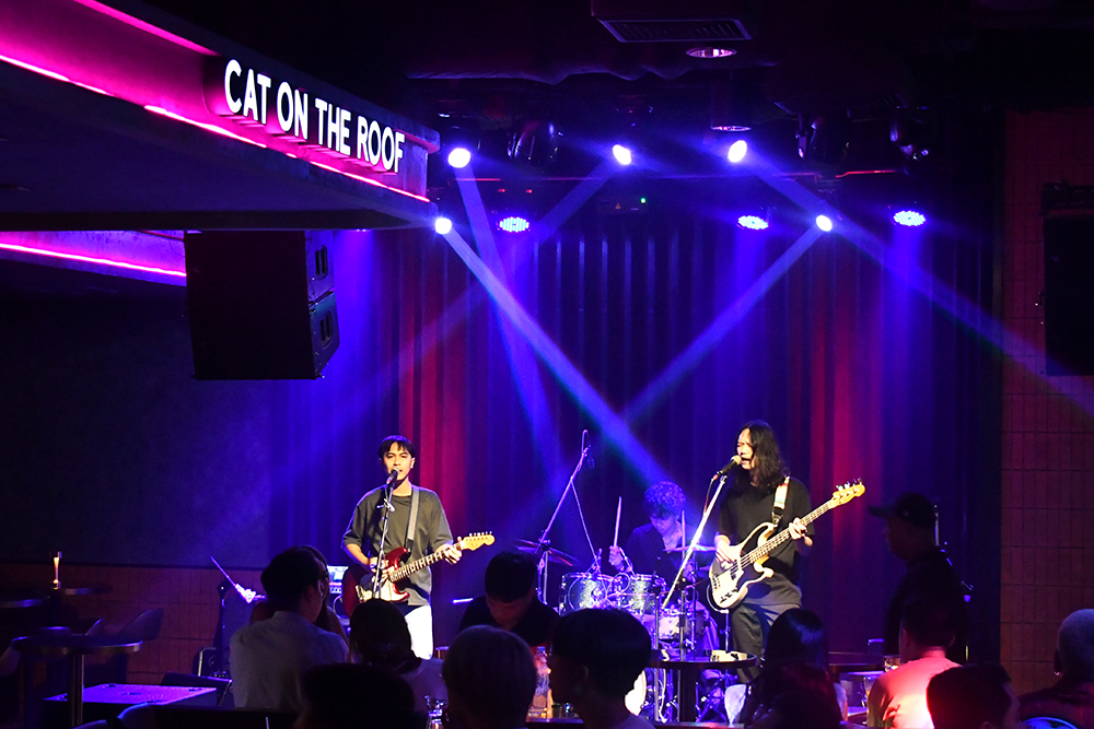 ส่วนใครชอบฟีลลิ่งเย็น ๆ แบบอินดอร์ ก็สามารถเลือกจับจองที่นั่งด้านในเพื่อเอ็นจอยกับวงดนตรีสดในทุกค่ำคืน (ได้ข่าวไลน์อัปแน่นมาก ตั้งแต่แก๊ง The Voice ยันวงดัง ๆ ก็แวะเวียนมาเล่นทุกสัปดาห์) ซึ่งว่ากันว่าสาขานี้ของ Cat on the Roof คือสาขาที่เครื่องเสียงจัดเต็มที่สุด ระดับที่เปิดคอนเสิร์ตจริงจังเลยยังได้! ส่วนโซนที่นั่งก็ตั้งใจทำให้มีความแกรนด์และดูเป็นทางการขึ้นกว่าสาขาสะพานควาย เพื่อรองรับนักท่องราตรีคนเมืองให้ได้นั่งชิลล์กันแบบไม่อึดอัด พร้อมความไฮโซขึ้นไปอีกด้วยที่นั่งโซนหน้าเคาน์เตอร์บาร์ และเลานจ์ VIP ด้านบนที่ยกสเตปสูงขึ้นกว่าที่นั่งทั่วไป ให้สามารถมองเห็นเวทีที่อยู่อีกฝั่งของร้านได้อย่างชัดเจนเต็มจอ