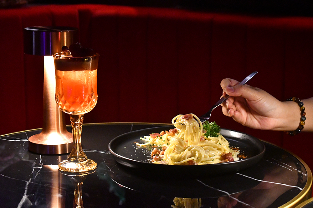 หรือถ้าใครเลิกงานแล้วหิวไม่ไหว ก็สามารถสั่งเมนูเมนคอร์สจัดหนักที่มีตั้งแต่ ยำหมูย่างหมี่ขาว (160 บาท) อาหารลูกครึ่งไทย-เวียดนาม ที่รสจัดจ้านกำลังพอดี ไม่หนักเกิน รวมถึง ข้าวไข่ข้นกุ้งพริกเกลือ (150 บาท) ที่นำกุ้งเนื้อแน่นไปคั่วกับพริกเกลือพอหอม ก่อนจะเสิร์ฟคู่กับไข่ข้นแสนครีมมี่ และสปาเก็ตตี้คาโบนาร่า (160 บาท) เมนูพาสต้าขวัญใจเด็กอ้วน ที่ได้เฮดเชฟฝีมือดีมาช่วยรังสรรค์สูตรให้หมดทุกเมนู