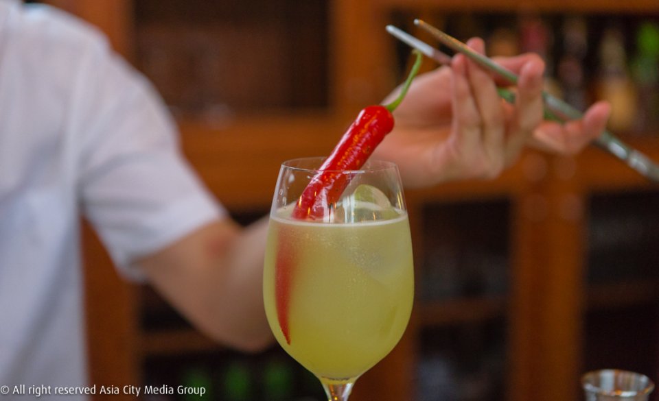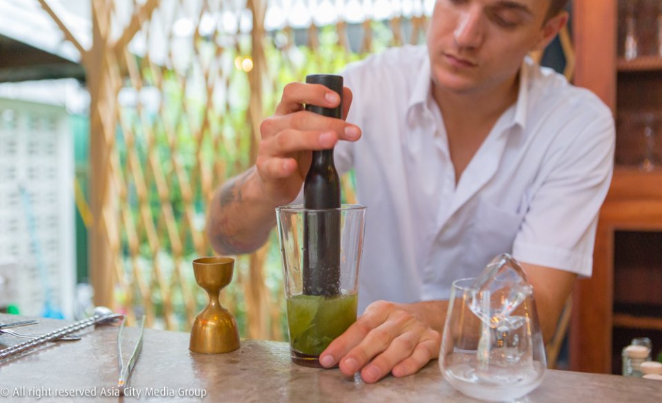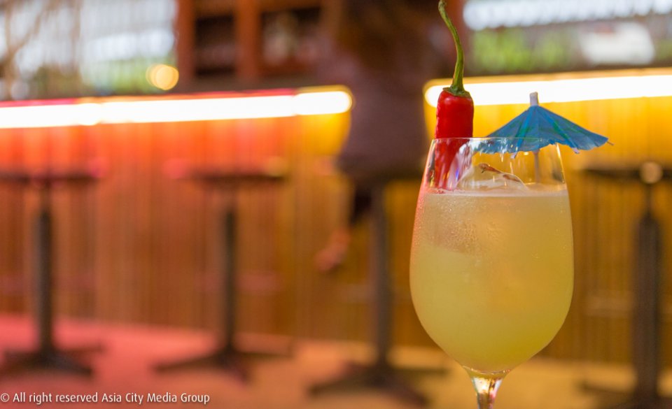 ความทรอปิคอลปนความชิลของที่ยังทำให้ไม่มีโต๊ะนั่งแบบร้านทั่วไป จะมีก็แต่แคร่ไม้ไผ่เตี้ยๆ วางอยู่คู่กับเก้าอี้ไม้เล็กๆ ไม่กี่ตัว แต่ที่เชิญชวนให้นั่งเป็นพิเศษคือที่เก้าอี้สูงหน้าบาร์ที่เราจะได้พูดคุยใกล้ชิดกับบาร์เทนเดอร์ แถมได้เห็นทุกขั้นตอนการปรุงค็อกเทลสูตรสเปเชี่ยลของที่นี่แบบวีไอพี