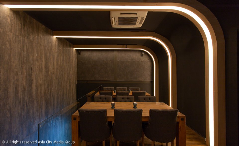 ตัวบาร์ซ่อนอยู่บนชั้นสองของร้านอาหารญี่ปุ่นที่ชื่อ Washi ซึ่งพอเดินขึ้นไปจะเจอกับมู้ดทวิสต์ในทันทีด้วยความมืดของบาร์ตัดกับการแต่งไฟเส้นทรงโค้งอารมณ์แบบ Futuristic นิด ๆ ต่อด้วยเก้าอี้นั่งแบบยกสูงหน้าบาร์ยาวตามสไตล์สปีกอีซี่บาร์