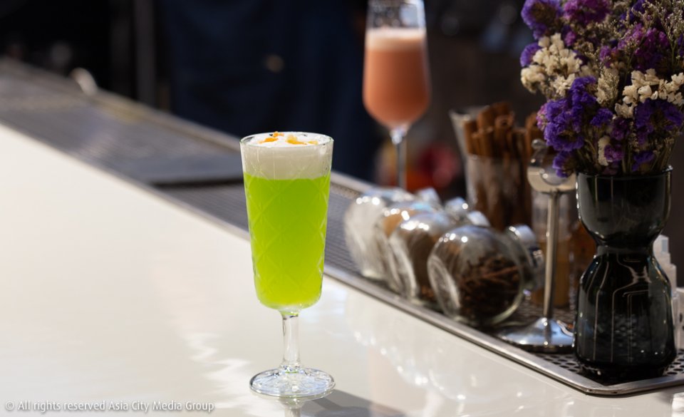 ไม่หมดเท่านั้น เพราะเมนูไฮไลท์อีกอย่างที่คุ้มค่ากับการที่เรานั่งรถมาถ่ายงานไกลถึงราชพฤกษ์มาก ๆ คือเมนู Wagyu Beef Truffle Sandwiches (380 บาท) ใช้แป้งบันเบอร์เกอร์หมึกดำ มาประกบพร้อมเนื้อวากิวจากออสเตรเลียที่เอาไปทำเป็นคัตสึกรอบ ๆ จิบคู่กับค็อกเทลรสชาติเบา ๆ อย่าง Love Potion (350 บาท) ที่ใช้เหล้า Midori และ Grand Marnier มาผสมกับไซรัปตะไคร้โฮมเมดของเชฟ ท็อปด้านบนด้วยโฟมไข่ขาวรสมะนาว และเมลอนออร์แกนิกอบแห้ง ถือเป็นทวิสต์ค็อกเทลอีกหนึ่งตัวที่ต้องใช้ทั้งศาสตร์ความเป็นเชฟและมิกซ์โซโลจิสต์ในการครีเอทีฟให้มีรสชาติกลมกล่อมได้ขนาดนี้