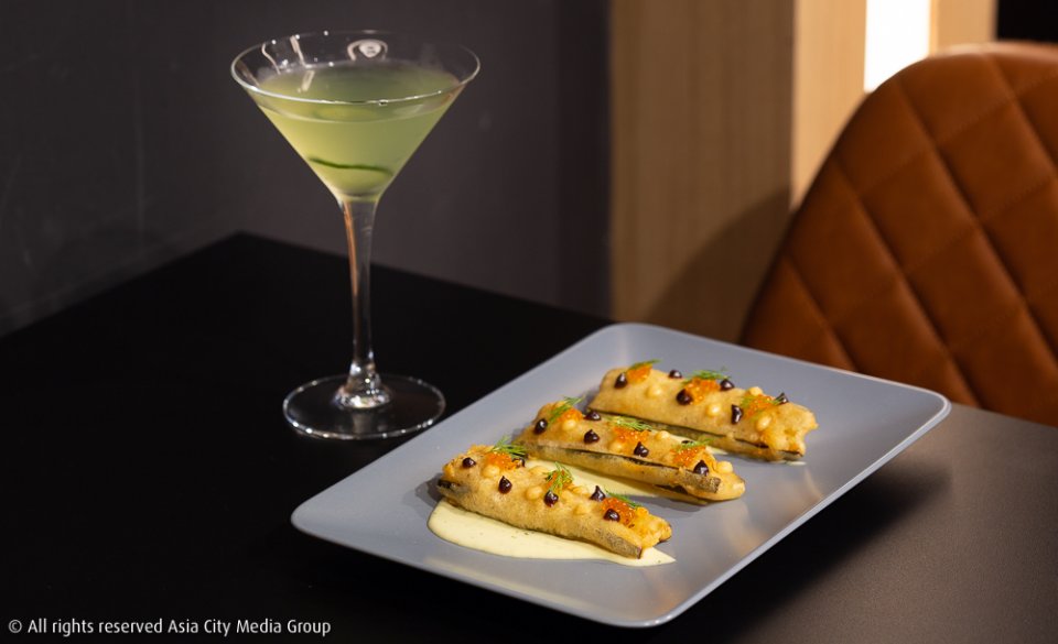 และอีกเมนูนึงที่เราชอบคือ อาหารจานออร์เดิร์ฟอย่าง Fried Pickles (150-230 บาท) ที่เชฟจับแตงกวาญี่ปุ่นมาดองเป็น pickles ฉบับโฮมเมด แล้วเอาไปชุบแป้งทอด เสิร์ฟพร้อมทาร์ทาร์ซอสที่ทำจากชีสนมแพะ และซอสบาร์บีคิวซอส พร้อมโปะหน้าด้วยไข่ปลาคาร์เวียร์ ซึ่งในจุดนี้ เชฟแนะนำให้จับคู่กับค็อกเทลซิกเนเจอร์ของร้านอย่าง Cucumbertini (300 บาท) เครื่องดื่มสำหรับคนชอบกินแตงกวา มีเบสเป็นเหล้าจิน ดรายเวอร์มุธ และใส่ส่วนผสมลับอย่างน้ำเชื่อมแตงกวาญี่ปุ่นลงไปด้วย