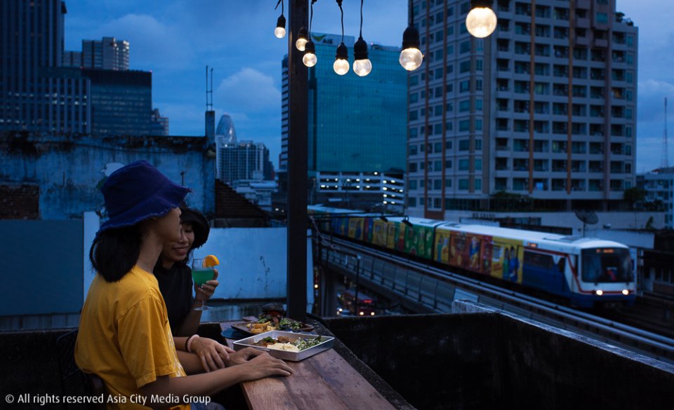 ด้วยความสูงบนวิวตึก 6 ชั้น ถึงการเดินขึ้นมาจะทำเอาเราหอบแฮ่กเป็นเจ้าเข้า แต่วิวแบบโอเพ่นแอร์ด้านบนที่เปิดโล่งให้เห็นท้องฟ้า (และรถไฟฟ้าบีทีเอส) ก็เป็นค่าตอบแทนที่คุ้มค่าเหนื่อยอยู่พอตัว