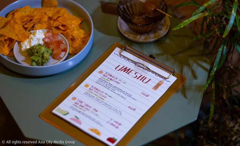 สำหรับใครที่ไม่ถนัดค็อกเทลเท่าไรนัก ที่นี่ก็มีเหล้าบ๊วยซีเลกชันพิเศษคัดสรรจากทุกภูมิภาคของญี่ปุ่น อาทิ Umesennin Melon (240 บาท) เหล้าบ๊วยแก้วโปรดของคุณบอม-เจ้าของร้าน ที่มีความพิเศษด้วยการใส่เมลอนจากจังหวัดคุมาโมโตะที่ปลูกบนตีนภูเขาไฟ Aso ลงไปด้วย เพื่อเพิ่มความหอมไม่เหมือนใคร รวมถึง Buay Baitoey (160 บาท) ที่ใช้เหล้าบ๊วย Choya รุ่นคลาสสิกมา Infused ด้วยใบเตยออร์แกนิก บอกเลยว่าแก้วนี้เราเลิฟมาก ดื่มเพลินจนรู้ตัวอีกทีก็สั่งเบิ้ลมา 3 แก้วแล้วเด้อ!