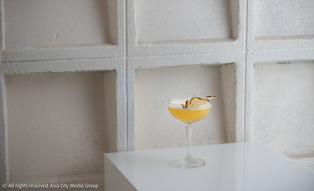 ต่อด้วย Canary (390 บาท) แก้วพิเศษในสีเหลืองเฉดผู้ดี ทวิสต์มาจากคลาสสิกค็อกเทลอย่าง Whiskey Sour โดยเปลี่ยนมาเล่นกับเหล้าไวต์รัมแทน ชูรสด้วยผลไม้รสเปรี้ยวแถบทรอปิคัลอย่างลิ้นจี่ สับปะรด และขิง เราชอบที่แก้วที่เขาทาขอบแก้วบาง ๆ ด้วยน้ำผึ้ง เวลายกดื่มก็จะได้รสหวานไปตัดความขมและเปรี้ยวของตัวค็อกเทล แต่ความอร่อยนี้อาจจะแลกมาด้วยความเหนียวมือนิดหน่อยพอให้ได้เอาไปป้ายหน้าเพื่อนเล่น ๆ