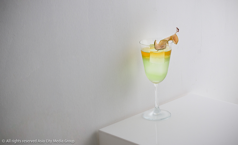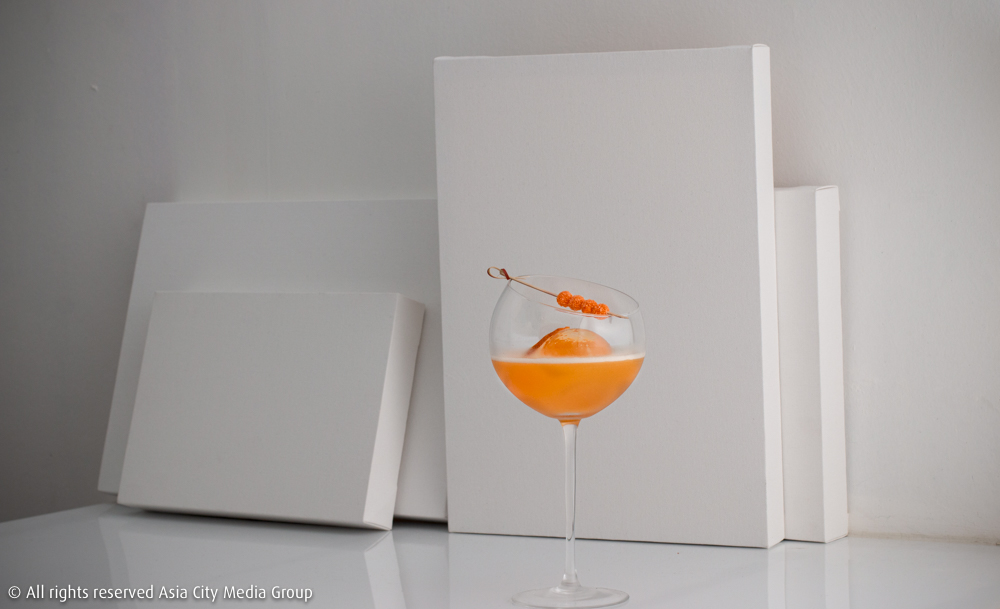 ผืนผ้าใบสีขาวว่างเปล่าที่ถูกแขวนไว้บนผนังในร้าน ถูกหยิบยกเป็นกิมมิกให้นักดื่มได้จินตนาการงานอาร์ตของตัวเองลงไป จะใส่สีไหนก็เลือกเอาได้ตามค็อกเทลซิกเนเจอร์ทั้ง 10 สีกันได้เลย เริ่มจาก Tangerine (390 บาท) ค็อกเทลแก้วสีส้มแทงเจอรีนที่มีเบสเป็นเหล้าแม่โขงติดกลิ่นและรสเผ็ดร้อนจากพริกสดที่นำไปอินฟิวส์ด้วยกัน เพิ่มเลเยอร์รสชาติอีกชั้นด้วยลิเคียวร์แอพริคอตที่มาพร้อมความหอมหวานแบบเชอร์รี เติมความซ่าด้วยโทนิกโหระพา และแต่งแก้วด้วยขนมเยลลี่รสส้ม เป็นหนึ่งในเมนูที่รังสรรค์โดย พี่มาสด้า-วัชระ วโรดม บาร์เทนเดอร์ฝีมือดี ดีกรีแชมป์รายการแข่งขัน Mekhong Thai Spirits Cocktails 2018 ซึ่งย้ายมาเป็นเฮดบาร์เทนเดอร์ประจำร้านนี้นั่นเอง