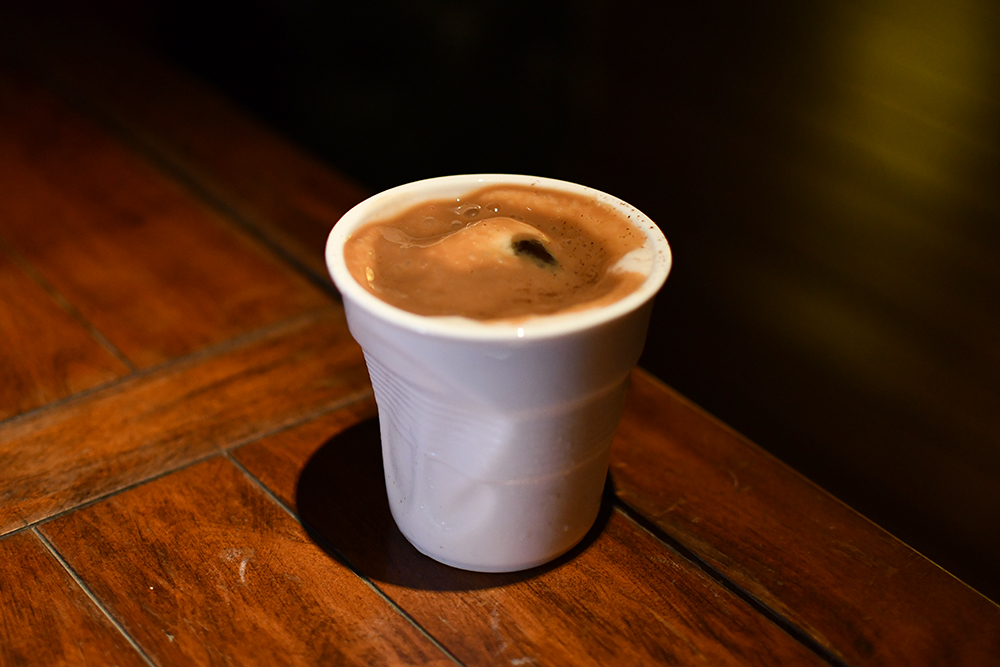 ส่วนอีก 2 แก้วที่มาแล้วควรลองคือ Coffee (390 บาท) ซึ่งถึงแม้ชื่อจะฟังดูง่าย ๆ เหมือนแค่เอากาแฟไปทำค็อกเทล แต่จริง ๆ แล้วเกิดขึ้นจากการใช้ทุกส่วนแม้กระทั่งเปลือกกาแฟ (คาสคาร่า) ดอกกาแฟ และโฟมเมล็ดกาแฟมาเป็นส่วนประกอบหลัก และ Cow (390 บาท) แก้วไฮไลต์ที่ใครมาก็อยากให้ลองสั่ง เพราะแค่เตรียมวัตถุดิบก็ปาไปเกือบ 3 วันแล้ว เนื่องจากมีการใช้น้ำมันจากเนื้อวัวสายพันธุ์จัสมินวากิวและบราวน์บัตเตอร์ที่เป็นวัตถุดิบอาหารคาวมาใช้ในค็อกเทล โดยมีเบสเหล้าเป็นบรั่นดีและไวน์แดง ใครที่อยากเปิดโลกและเข้าวงการเครื่องดื่มเวิลด์คลาสแบบจริงจัง ก็ไม่ควรพลาดแก้วนี้ด้วยประการทั้งปวง