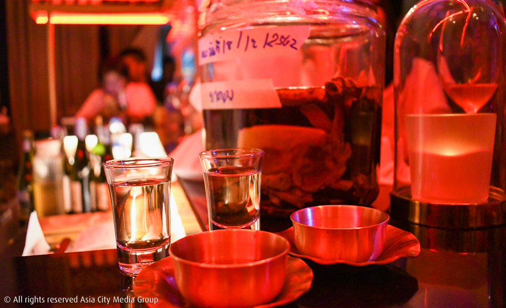 นอกจากออร์แกนิกและเนเชอรัลไวน์ทั้งแบบขวดและแบบแก้วในสนนราคาเริ่มต้นแก้วละ 200 บาทแล้ว สุราเมรัยแบบไทย ๆ ในสูตรเชฟต้นก็เป็นอะไรที่มาร้านนี้แล้วเราอยากให้ลองสั่งมาเทสต์สักกรึ๊บสองกรึ๊บ เพราะยาดอง (200 บาท) ตำรับลับสูตรสมุนไพรจีนกว่า 12 ชนิด ทั้งรากโสม เก๋ากี้ ตังกุย ตังเซียม และเครื่องยาจีนหายากอีกหลายตัว ถูกใส่ลงไปไม่ยั้งในเบสเหล้าขาวไทยเพื่อดองเป็นเครื่องดื่มขนานเอกสูบฉีดเลือดลมของเราให้พุ่งพล่าน กรึ๊บรัว ๆ ได้พร้อมน้ำใบเตยหอม ๆ