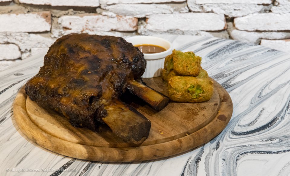 ตลอดจนเมนูหนักๆ ที่สามารถแชร์กับเพื่อนได้ เช่น พาสต้าเส้นดำโฮมเมดพริกกระเทียม (250 บาท) เนื้อปูเน้นๆ ท็อปด้วยหอยจ๊อปูไข่ หรือจะเล่นใหญ่สั่ง Beef Ribs ที่เสิร์ฟพร้อมโครเกต์ถั่วลันเตามาเลยก็ได้ ไม่อิ่มก็ให้รู้ไป