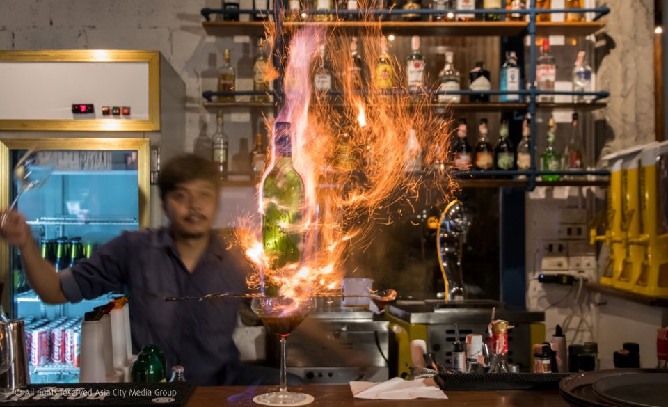 ส่วนขวามือสุดเป็นสเปซสำหรับดนตรีสดและดีเจ บาร์เบียร์กับค็อกเทลแยกกันเป็นสัดส่วนชัดเจน ใครใคร่นั่งตรงไหนก็นั่ง ไม่ว่าจะเป็นหน้าบาร์ โต๊ะใหญ่ หรือบริเวณเอ้าท์ดอร์รับลมเบาๆ ก็ได้