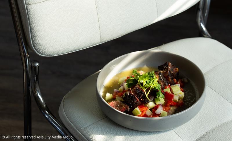 ส่วนใครที่ยังไม่สะใจ ก็สามารถสั่ง Spicy Grilled Beef Salad (299 บาท) มาลองด้วยก็ได้ เราค่อนข้างชอบจานนี้เพราะคุณบีเลือกใช้เนื้อส่วน Spare Ribs มาสโม้กก่อน แล้วค่อยย่าง ต่อจากนั้นก็เอาไปยำในสไตล์จัดจ้าน เชื่อว่าเป็นกับแกล้มคู่กับเบียร์คือเวิร์กมาก ๆ แถมยังเข้าคู่กับค็อกเทลทีเด็ดของร้านนี้อย่าง Pong Prai (280 บาท) ค็อกเทลเบสวอดก้าผสมพอร์ตไวน์ที่ให้รสเปรี้ยวด้วยลิ้นจี่ มะนาว และเพิ่มความหอมด้วยกุหลาบด้วยนะ
