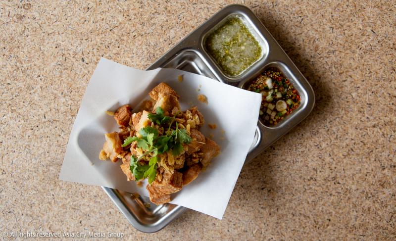 จานไฮไลท์ที่เรารักมากและอยากให้ทุกคนมาลองสั่งคือ Salted Fried Pork Neck (130 บาท) หมูกรอบทอดเกลือทีเด็ดแห่ง Sunray ที่คุณบีเลือกใช้คอหมูชิ้นหนา ๆ เน้น ๆ มาหมักแล้วทอดกรอบ เสิร์ฟกับน้ำจิ้มสองสไตล์คือซีฟู้ดและจิ้มแจ่ว