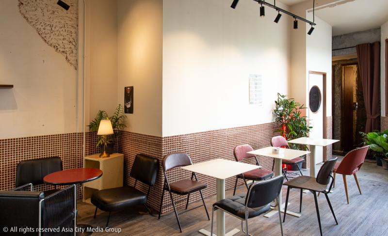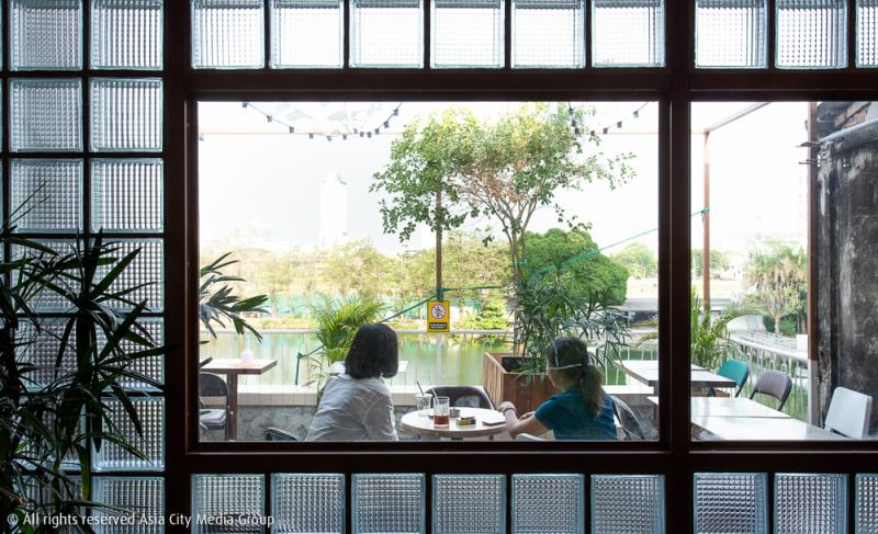 เฟอร์นิเจอร์ร้านในสไตล์วินเทจคุมโทนถูกวางแบบไม่ตั้งใจอยู่ทั่วร้าน มีเคาน์เตอร์บาร์ค็อกเทลขนาดใหญ่อยู่ที่มุมหนึ่ง และแยกโซนเอ้าท์ดอร์ออกไปไว้ที่ระเบียงร้าน ซึ่งเราสามารถมองเห็นวิวหลักล้านของบึงน้ำขนาดใหญ่ในค่ายทหารสนามเป้าได้แบบเต็ม ๆ ตาไม่มีอะไรมาบัง