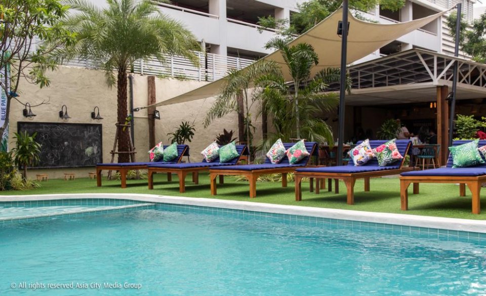 Blue Parrot ร้านชิลเอาท์ริมสระน้ำที่เราสามารถกิน ดื่ม และเล่น ไปพร้อมๆกัน ภายในร้านตกแต่งเหมือนสวนหลังบ้านที่มีสนามหญ้าและสระว่ายน้ำทรงขวด ใครจะลงไปว่ายจริงๆ ก็ได้ตามสบายเลยนะ หรือจะนั่งจิบค็อกเทลเก๋ๆบนเตียงอาบแดดก็ได้เหมือนกัน