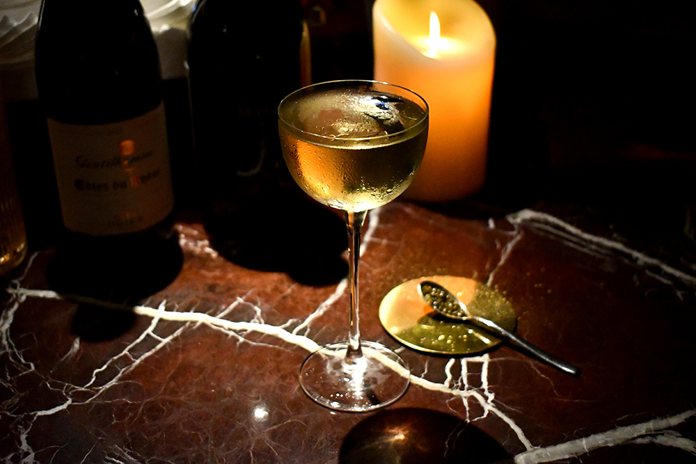 ส่วนใครที่อยากลิ้มรสชาติความรุ่มรวยแบบสาวรัสเซียแท้ ๆ เราอยากให้ลองเมนูในชื่อ Black & Gold (750 บาท) ค็อกเทลแก้วสปิริตรุนแรง ที่เลือกใช้ Beluga วอดก้าจากรัสเซีย มาเติมกลิ่นหอมด้วย Pai Mu Tan ยอดใบชาจากจีน เพิ่มความหรูหราขั้นกว่าด้วยบรุตไวน์ และเสิร์ฟพร้อมคาเวียร์หนึ่งช้อนชาพูน ๆ อันเป็นวัตถุดิบที่ได้รับสมญานามว่ามีมูลค่ามากกว่าทองคำ