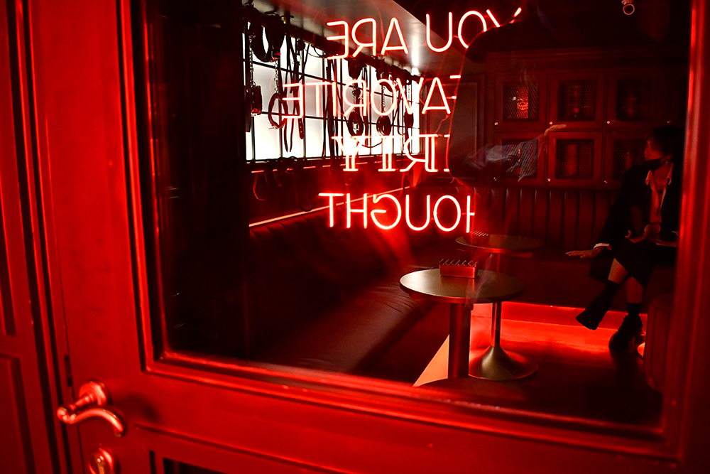 แต่ช้าก่อน! นี่ไม่ใช่แค่ไฮไลต์เดียวของที่นี่ เพราะที่ Playroom ยังมีความลับแสนเย้ายวนซ่อนอยู่ นั่นคือห้องลับอีก 2 ห้องด้านหลัง แบ่งเป็นห้องสูบซิการ์พร้อมพร็อพเล็ก ๆ น้อย ๆ เป็นโซ่ แส้ กุญแจมือ ตอบรับกับอินสไปร์หลักของร้านจากหนังเรื่อง Fifty Shades of Grey ให้เราได้จินตนาการว่านี่คือห้องเล่นสนุกของ Mr.Grey และอีกห้องที่เป็น Private Room สำหรับรองรับแขก VIP ซึ่งจุคนได้มากถึง 15 ที่นั่ง