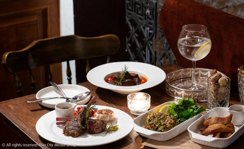 ในส่วนของเมนูอาหารก็มาในสไตล์กินได้ทุกคน ไม่ต้องเถียงกันเยอะ เพราะที่ร้านเขาคัดมาให้แล้ว อาทิ สตูวลิ้นวัว (280 บาท) ที่ใช้วิธีการเคี่ยวสตูแบบ slow cook ทำให้ลิ้นวัวไม่เหนียว แถมยังไม่มีกลิ่นด้วยนะ ซึ่งถ้าใครเป็นสายเนื้อแบบจริงจังก็สามารถสั่ง ซีโครงแกะย่างเกลือ (480 บาท) มาชิมได้ด้วยเหมือนกัน เพราะส่วนตัวเราคิดว่าครัวของร้านนี้ทำเมนูจำพวกเนื้อออกมาได้ดีไม่แพ้ร้านอาหารดัง ๆ เลยทีเดียว