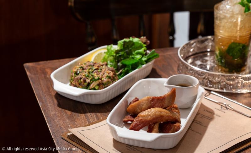 ปิดท้ายด้วยสองเมนูเอาใจคนที่กำลังมองหากับแกล้มไว้กินคู่กับซิงเกิ้ลมอลต์และค็อกเทล ที่นี่ก็มีเมนูสายแซ่บอย่างลาบก้อยเนื้อกึ่งสุก (240 บาท) และเนื้อแดดเดียวทอด (180 บาท) รับรองว่ากินเพลินไปถึงดึกดื่นค่ำมืดแน่นอนเด้อ