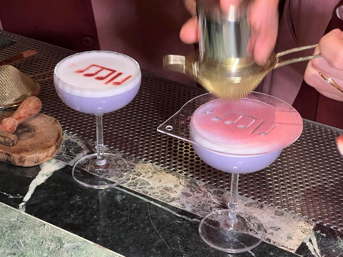 ความล้ำของค็อกเทลเซตใหม่นี้ คือการหยิบเอาคีย์โน้ตเพลงตั้งแต่คีย์ A ยันคีย์ G มาใช้เป็นวัตถุดิบเพื่อรังสรรค์เครื่องดื่มที่รสชาติไม่เหมือนใคร อย่างแก้วแรกที่พี่ฝาเบียร์แนะนำให้ลองคือ Key A (420 บาท) ที่นำเพลง Für Elise ของศาสดาแห่งเพลงคลาสสิกโลกอย่าง บีโทเฟน มาตีความใหม่ ซึ่งพี่ฝาเบียร์อธิบายว่า เวลาเราฟังเพลงนี้ เรามักจะนึกถึงเด็กสาวตัวน้อยในชุดกระโปรงฟูฟ่องสีชมพูที่กำลังเต้นบัลเลต์อยู่ เลยเป็นที่มาให้ดริงก์แก้วนี้มีสีชมพูจากเหล้าจินและคอร์เดียลองุ่นแดง พร้อมรสหวานหอมจากไซรัปเชอร์รี ท็อปด้านบนด้วยแคนดี้สีชมพูเข้ม และเลือกเสิร์ฟมาในแก้ว Rocking Glass คล้ายกับอยากให้ค็อกเทลแก้วนี้สามารถเต้นบัลเลต์ได้ด้วยตัวของมันเอง