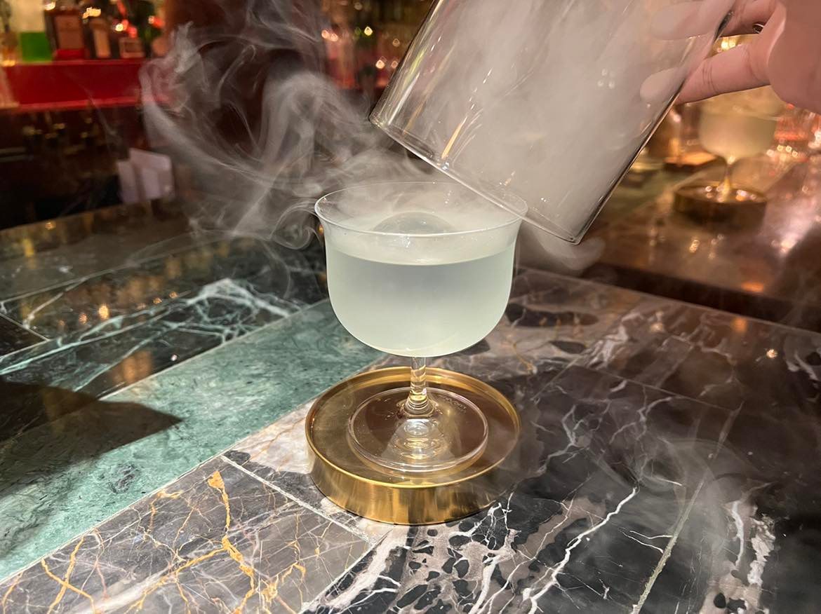 ส่วนแก้วที่เราชอบที่สุดในเซตนี้ ขอยกให้กับ Key F (420 บาท) ค็อกเทลที่ตีความเพลง Winter ในคีย์ F Minor ได้หนาวเย็นยะเยือกสมชื่อ เริ่มตั้งแต่รสชาติเย็นแบบเผ็ด ๆ จากการนำใบเนียมไปแช่ในเหล้าจิน ให้กลิ่นอะโรม่าด้วยลิเคียวมะกรูด และสโมกควันไม้แอปเปิลมาก่อนเสิร์ฟ เพื่อเพิ่มฟีลลิ่งความหนาวเย็นแบบจี๊ดถึงขั้วหัวใจ