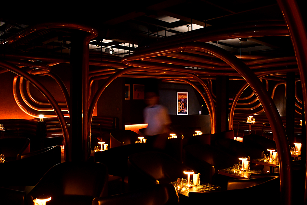และถ้าคิดว่าด้านนอกอลังการสุด ๆ แล้ว อินทีเรียร์ด้านในคือตาแตกตายไปเลยด้วยการจัด lighting อย่างชาญฉลาด มีความเป็นหนัง The Fifth Element เบา ๆ แถมด้วยสเปซยิ่งใหญ่สุดอลังการ ซึ่งถือเป็นร้านที่ใหญ่สุดในบรรดาเครือ Yolo Group แบ่งสัดส่วนออกเป็นโซนโต๊ะนั่งพร้อมโซฟาสำหรับกลุ่มเพื่อน ที่นั่งโต๊ะเล็กสำหรับคู่รัก รวมถึงที่นั่งในโซนเคาน์เตอร์เก้าอี้ทรงสูงหน้าบาร์ค็อกเทล