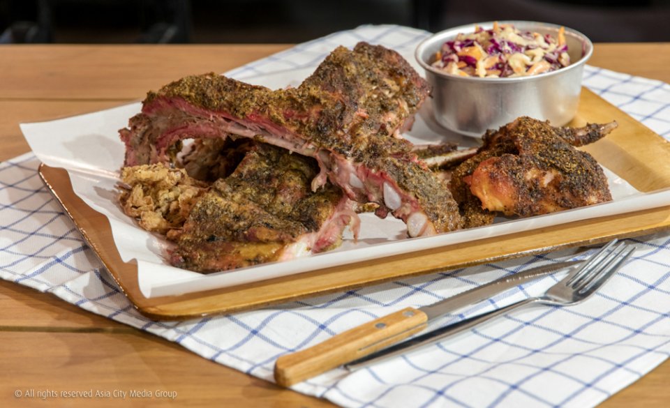 ส่วนที่พีคที่สุดของร้านนี้เห็นจะเป็นเมนูอาหารสไตล์ Texas ที่จริงจังขนาดรมควันซี่โครงหมูกันนานถึง 8 ชั่วโมง และเมนูที่เราชอบมากคือปีกไก่รมควันหมักซอสศรีราชา (180 บาท) เสิร์ฟพร้อมมันฝรั่งชุบแป้งทอด ซึ่งความพิเศษก็คือเค้าใช้เวลาในการรมควันไก่เป็นหลายชั่วโมงเช่นกัน