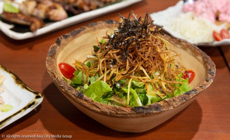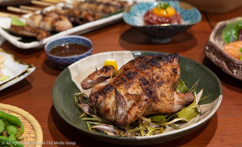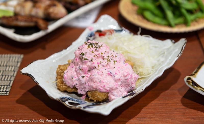 พูดถึงไก่ย่าง ที่นี่เองก็มีจานไก่ ๆ มาให้เราได้ลองสั่งเหมือนกัน อย่างเช่นยากิโทริ หรือไก่ย่างเซ็ต 8 ไม้ (240 บาท) เมนูขายดีของทางร้านที่มีมาให้กินครบหลายแบบ ทั้งปีกไก่ สะโพก ตูดไก่ หนังไก่ อกไก่บ๊วยใบโอบะ ตับ กัวใจ และกึ๋น ที่นี่เขาย่างมาแบบไม่เค็มจนเกินไป กินเปล่า ๆ กำลังดี แต่กินกับข้าวก็อาจจืดไปนิดนึง ส่วนสายทอดเราอยากให้ลองไก่ทอดราดซอสอิคุเสะ (180 บาท) ไก่ทอดชิ้นใหญ่ ๆ ราดทาทาร์ซอสที่ทางร้านทำขึ้นมาเอง ซึ่งทางร้านจะทำซอสออกมาในสไตล์คันไซ ที่มีส่วนผสมของไชเท้าดองญี่ปุ่น ซอสเลยมีสีชมพูหน่อย ๆ ส่วนอีกจานเป็นเบบี้ชิกเก้นอบ (320 บาท) ความดีงามของจานนี้อยู่ที่ไก่ของทางร้านนั้นเป็น Free-Range เลี้ยงในระบบเปิด จึงเป็นไก่ออร์แกนิกส์ที่ไม่มีสารใด ๆ ทั้งฮฮร์โมน หรือสารเร่งเนื้อด้วย