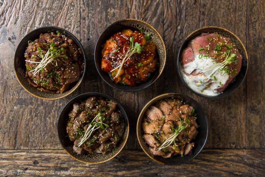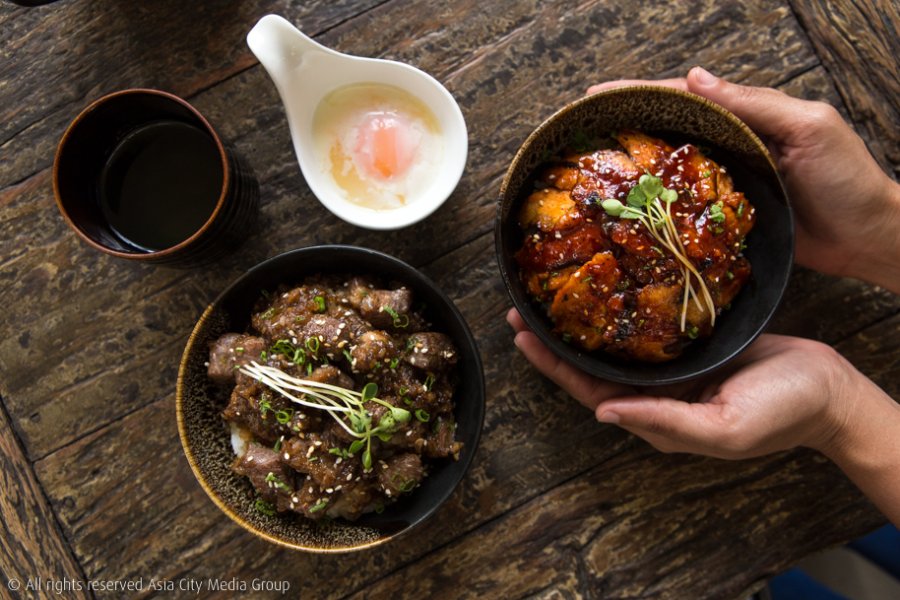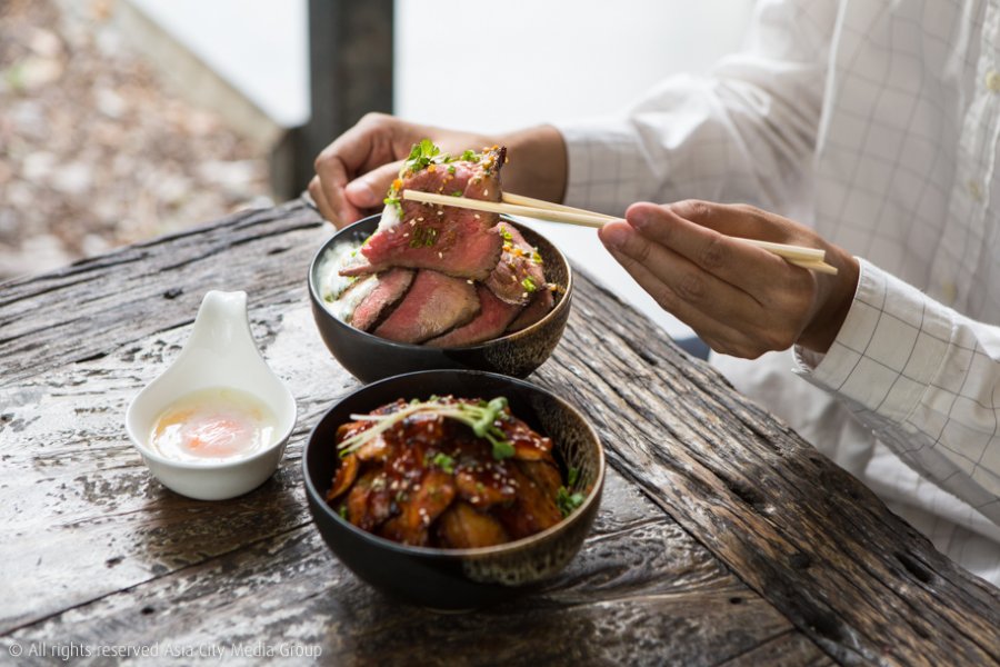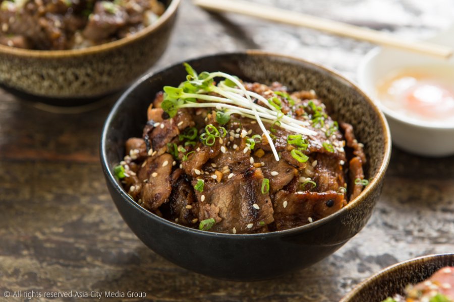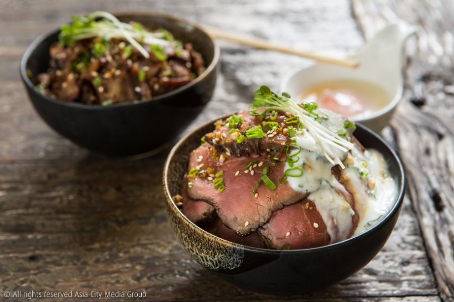 แต่ถ้าตัวเด็ดตัวโดนที่มาแล้วไม่สั่งนี่ถือว่ามาไม่ถึงต้องยกให้เหล่าพาเหรดข้าวหน้าเนื้อที่ทำเอาเราต้องเปลี่ยนความคิดเรื่องข้าวหน้าเนื้อเสียใหม่ ว่าข้าวหน้าเนื้อส่วนใหญ่ก็จะพื้น ๆ เบ ๆ ก็แค่เนื้อผัดสไตล์ญี่ปุ่นโปะลงข้าวเท่านั้น แต่ข้าวหน้าเนื้อที่นี่จัดหนักแบบเนื้อพูนชามจนมองไม่เห็นข้าว เราขอให้ลองสั่ง Red Volcano (เล็ก 220 บาท / ใหญ่ 380 บาท) เมนูซิกเนเจอร์ตระกูลข้าวหน้าเนื้อของที่นี่ที่เลือกเนื้อส่วน Rump ที่กริลล์มากำลังมีเดียม โปะพูน ๆ พร้อมซอสโยเกิร์ตสูตรพิเศษของทางร้านที่เล่นเอาเราคิ้วขมวดเล็กน้อยเมื่อได้ยินว่ามันจะเข้ากับเนื้อยังไง แต่พอได้ลองชิมทั้งเนื้อ ทั้งซอส และข้าวไปพร้อม ๆ กันแล้วก็ต้องแปลกใจว่าซอสโยเกิร์ตเปรี้ยวอมหวานนี่มันเข้ากับเนื้ออย่างไม่น่าเชื่อ
