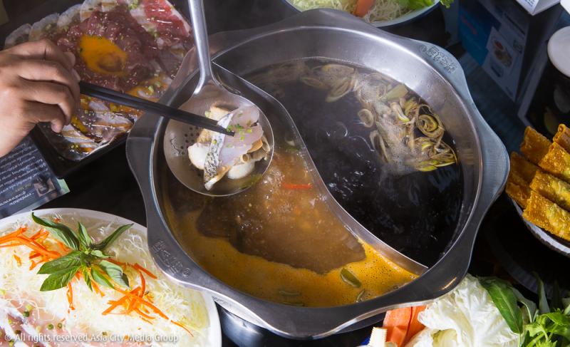 ทางร้านมีน้ำซุปให้เลือกถึง 4 แบบ สามารถเลือกได้ 2 น้ำซุปต่อหม้อ เริ่มที่น้ำซุปใสสมุนไพร ออกแนวไทย ๆ หอมเครื่องสมุนไพรอย่างข่า ตะไคร้ น้ำซุปทมิฬ (น้ำดำ) ที่ออกสไตล์ญี่ปุ่นหน่อย ๆ และอีก 2 สูตรน้ำซุปที่ต้องเพิ่มเงินเล็กน้อย แต่ก็ถือเป็นซิกเนเจอร์ของทางร้านอย่าง ซุปตามิตร (เพิ่มเงิน 30 บาท) ที่เป็นน้ำซุปเต้าเจี้ยวโบราณสูตรของคุณตามิตรแท้ ๆ ตัวซุปจะขุ่น ๆ มีเม็ดเต้าเจี้ยวนอนก้นอยู่เต็ม ปรุงรสมาแบบ 3 รสอร่อยกำลังดี และน้ำซุปหมาล่า (35 บาท) ที่สายเผ็ดน่าจะชอบ เราว่าแต่ละน้ำซุปก็อร่อยในแบบของมันเอง อย่างซุปทมิฬจะอร่อยมากถ้าใส่กะหล่ำปลีซอยเข้าไป ซุปตามิตรที่ลวกปลาอร่อยดี หรือซุปหมาล่าที่จะเอาอะไรหย่อนลงไปก็เพิ่มความเผ็ดร้อนได้ดีเลยแหละ
