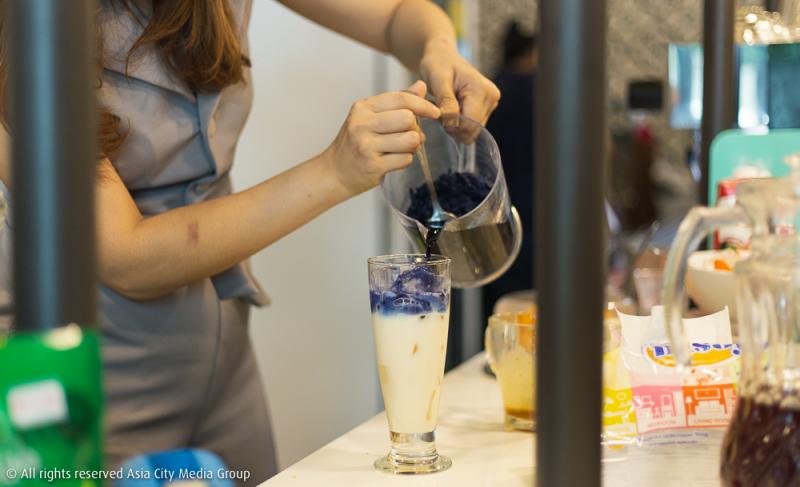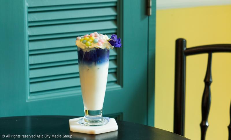 นอกจากแค้กแล้ว พาน-พบ คาเฟ่ ยังมีเมนูเครื่องดื่มสไตล์ไทย ๆ ให้ได้ลองกันอีกด้วย อย่างนมอัญชันบัวลอยพาสเทล (90 บาท หากไม่ใส่บัวลอย 60 บาท) นมสด ๆ ใส่น้ำต้มดอกอัญชันเป็นเลเยอร์สีสวย โปะด้วยครีมสดด้านบนและท๊อปด้วยบัวลอยสีพาสเทลน่ารัก ๆ เวลากินก็คนให้เข้ากัน ถือเป็นเครื่องดื่มที่มีอะไรให้เคี้ยวหนุบ ๆ เหมือนชานมไข่มุกไต้หวัน แต่นี่มาเป็นแบบไทย ๆ คออัญชันยังมีเมนูน้ำมะพร้าวอัญชัน (65 บาท) ให้ได้ลองชิมเพิ่มความแปลกใหม่กันอีกด้วย