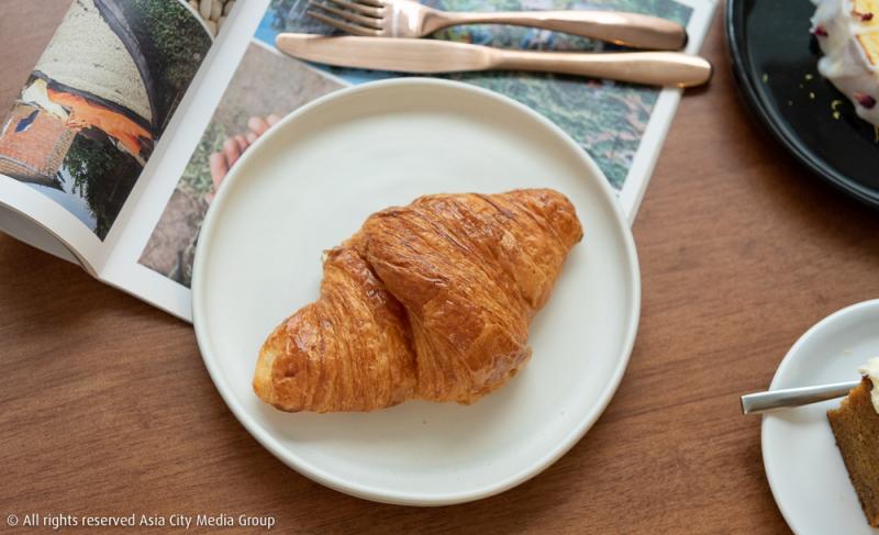 ต่อกันที่ขนมหวาน เมนูส่วนใหญ่คุณเมย์จะเป็นคนทำเองทั้งหมด และจะมีบางตัวเช่นครัวซองต์ที่รับมาจากร้าน Conkey's Bakery แบบวันต่อวัน อย่าง Plain Croissant (90 บาท) ที่ได้กินกันก็มีกลิ่นที่หอม รสชาติที่ดี แป้งบางกรุบ กินคู่กับกาแฟคือดีมากจริง ๆ Carrot Cake (110 บาท) ที่ด้านบนท็อปด้วย Mascapone Cheese ตีครีมขึ้นมาเอง มีความเปรี้ยวของครีมชีสด้านบนตัดกับความหวานของตัวเค้ก เวลากินแล้วจะได้ texture ความหนึบและความกรุบเล็ก ๆ