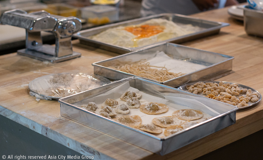 นอกจากเมนูประจำแล้ว ทางร้านยังจัดพาสต้าแต่ละแบบที่มีมาวางไว้บนเคาน์เตอร์ เพื่อให้เราสามารถมาเลือกดูเอาเองได้ว่าอยากทานเส้นแบบไหน แล้วให้เชฟช่วยจัดให้ได้ว่าจะทานคู่กับซอสแบบใด