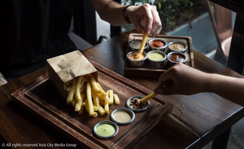 Fries ที่นี่ถือว่าแตกต่างจากร้านอื่น ที่นี่จะทอดก็ต่อเมื่อมีออเดอร์เข้ามาเท่านั้น เพราะจะได้คงความกรอบของตัวมันฝรั่งไว้ จะไม่มีการทอดค้างไว้ก่อน อีกทั้งในส่วนของปริมาณก็เช่นเดียวกัน เพราะที่นี่ให้เยอะถึง 300 กรัมเลยทีเดียว แบ่งกินกันหลายคนได้สบาย ซอสมีให้เลือกหลายรสชาติ แต่สามารถเลือกได้แค่สามรสนะ สามารถรีฟิลได้